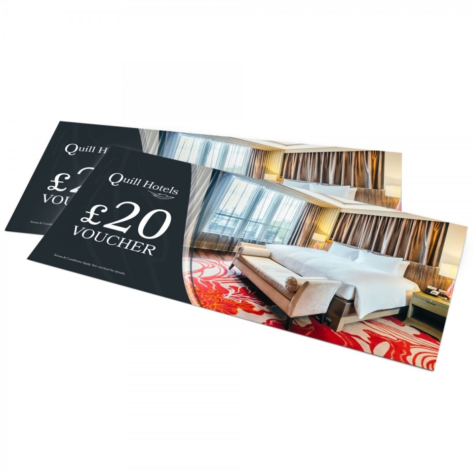 Gift vouchers enable your most loyal customers to promote your brand by gifting vouchers to their friends, family and colleagues. It's a great way to drum up extra revenue while introducing new customers to your restaurant, shop, salon, sports club or leisure experience. Our gorgeous vouchers are available in a choice of different sizes, papers and finishes, allowing you to craft a professional quality voucher which complements and enhances your brand. For a luxurious finish and added protection from handling, consider optional lamination. It's available across our 250gsm, 350gsm and 450gsm silk stocks.