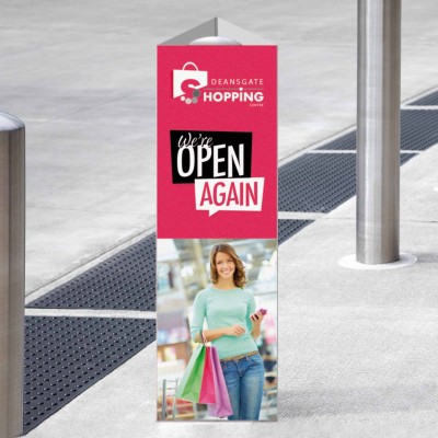 Transform your bollards and lampposts into prime advertising space with custom printed bollard covers. Also known as bollard sleeves or totems, they're an effective and eye-catching way to promote special offers, upcoming events and new store openings. Bollard covers are also popularly used to convey health and safety information and for directional signage. Manufactured from lightweight fluted plastic, the covers fit around most bollards, lampposts and street signs and feature three printed panels so they can be viewed from all angles.